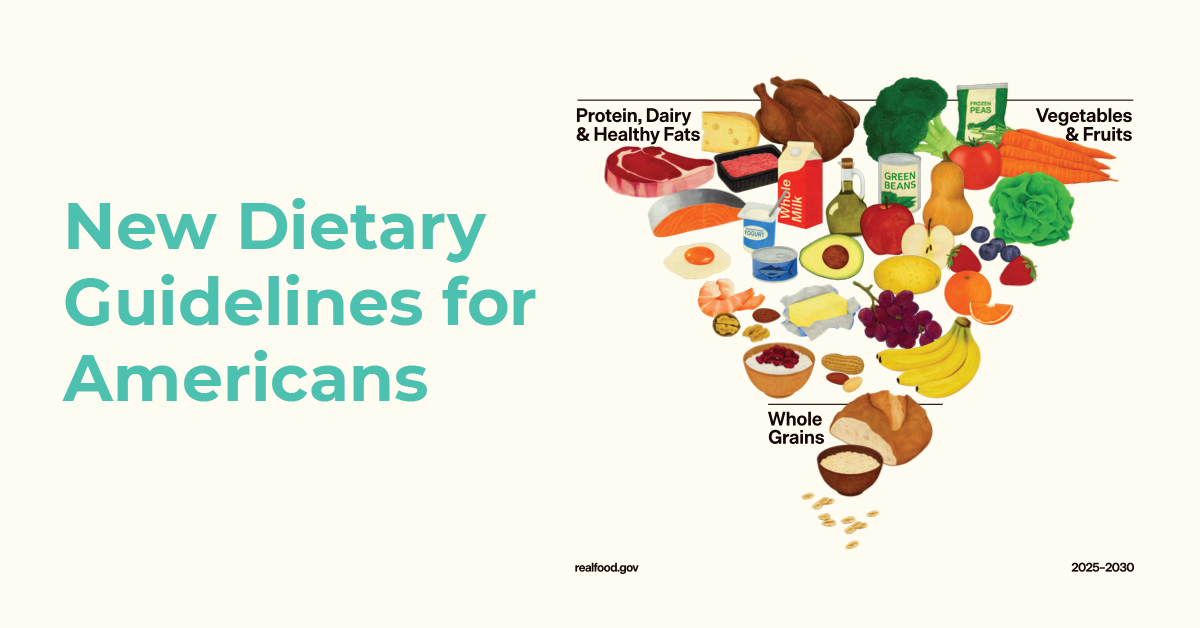TL;DR: The updated Dietary Guidelines are simpler and more visually bold, with continued emphasis on whole foods and a stronger focus on protein. While the changes are unlikely to affect how most people eat day to day, they do matter for schools, workplaces, and healthcare settings that rely on clear nutrition guidance.